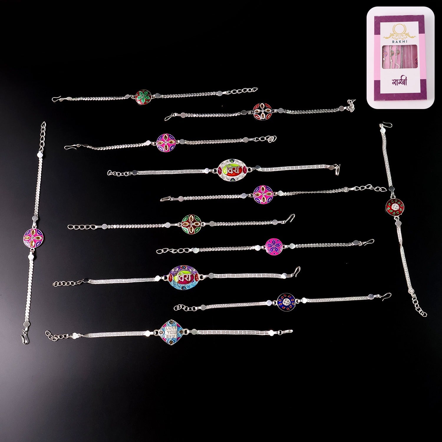 Pack Of 12 Silver Chain Rakhis by Premium Craft delivers Elegance and Tradition for Celebrating Brotherly Love