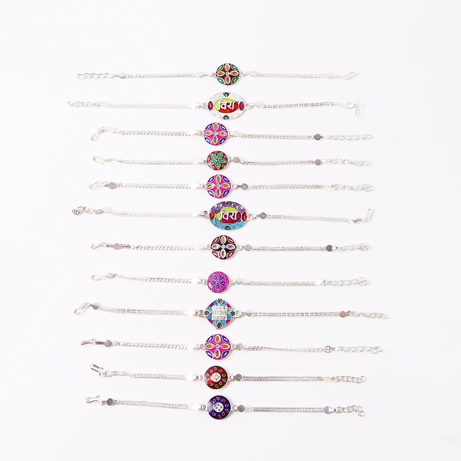 SilverCraft Pack Of 12 Silver Chain Rakhis – Elegant Bracelet Style Design
